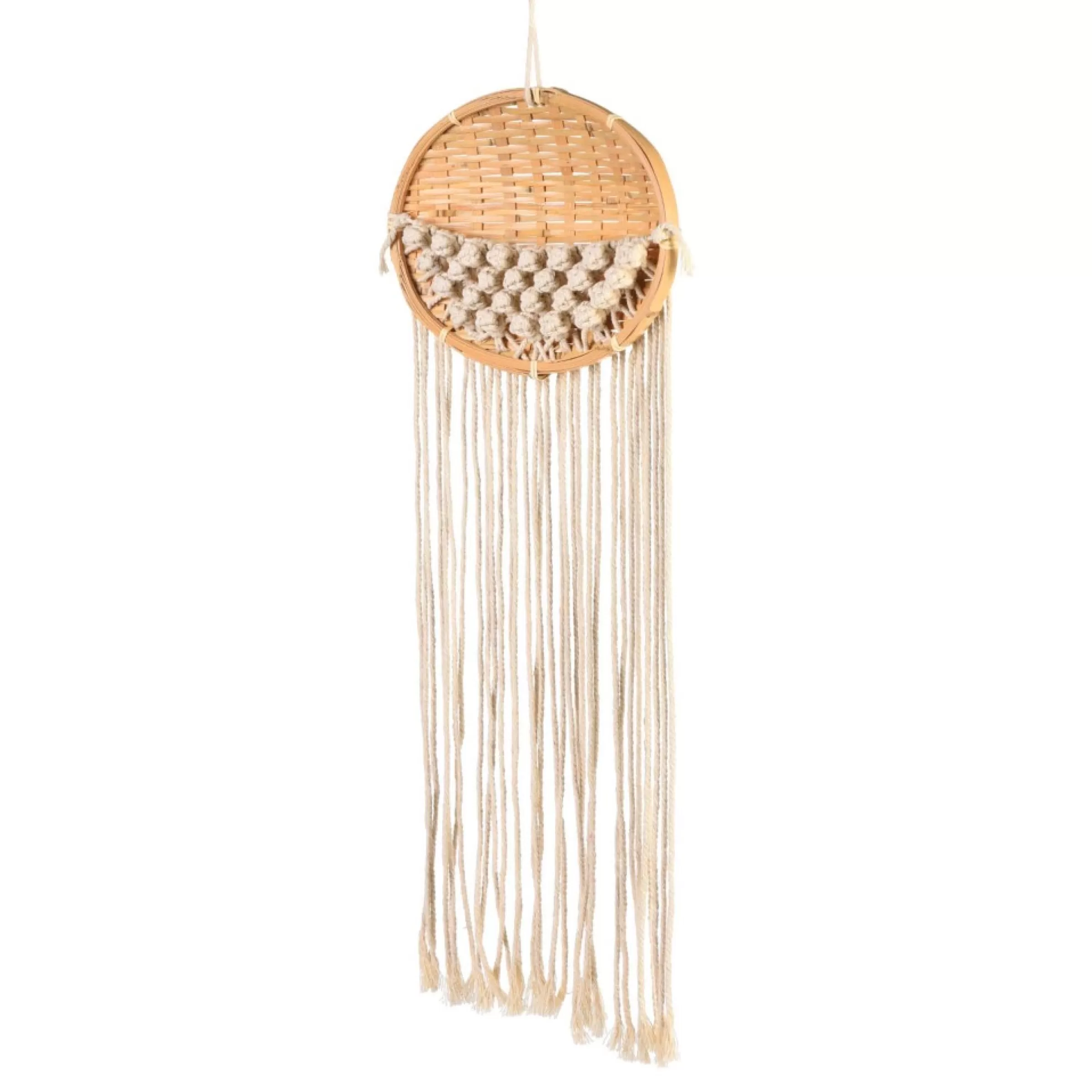Assiette En Bambou Avec Poche En Macrame Tisse.